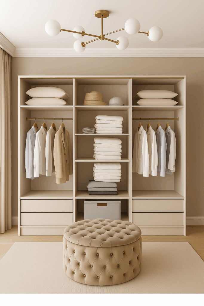 MERV K12 to projekt, który łączy przemyślaną konstrukcję z dużą ilością miejsca na wszystko, co chcesz mieć pod ręką – od codziennych stylizacji po sezonowe dodatki. Układ półek, szuflad i drążków został zaplanowany tak, aby odpowiadać na realne potrzeby użytkowników: