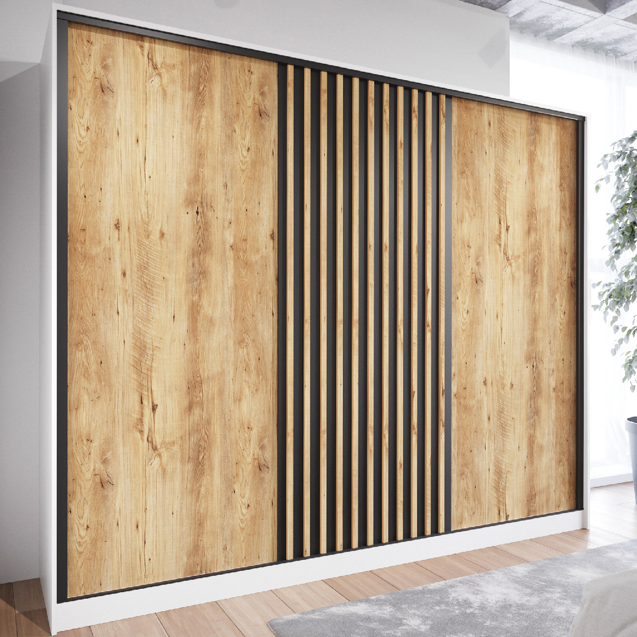 Szafa przesuwna CETI A 250 biały / dąb wotan / czarny