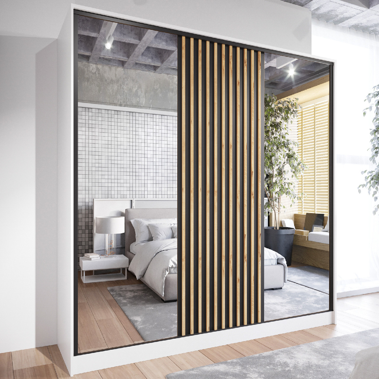 Napisz pierwszą opinię o „Szafa przesuwna z lustrem SOLI B 200 biały / dąb wotan / czarny”