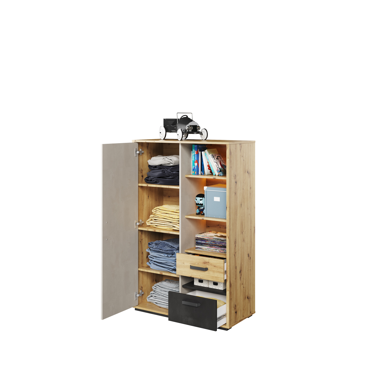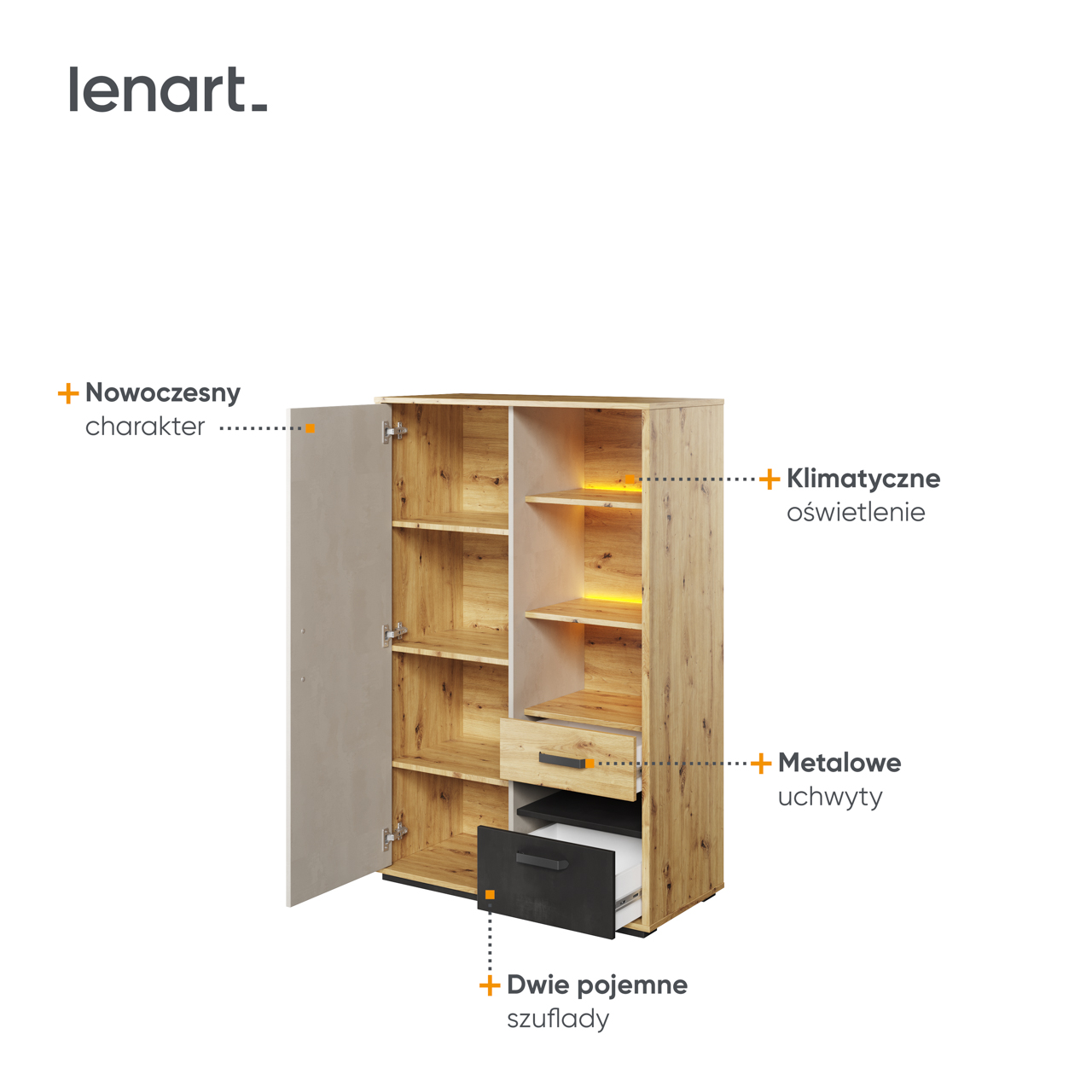 Wybarwienie korpusu: Dąb artisan / Raw steel / Silk flou