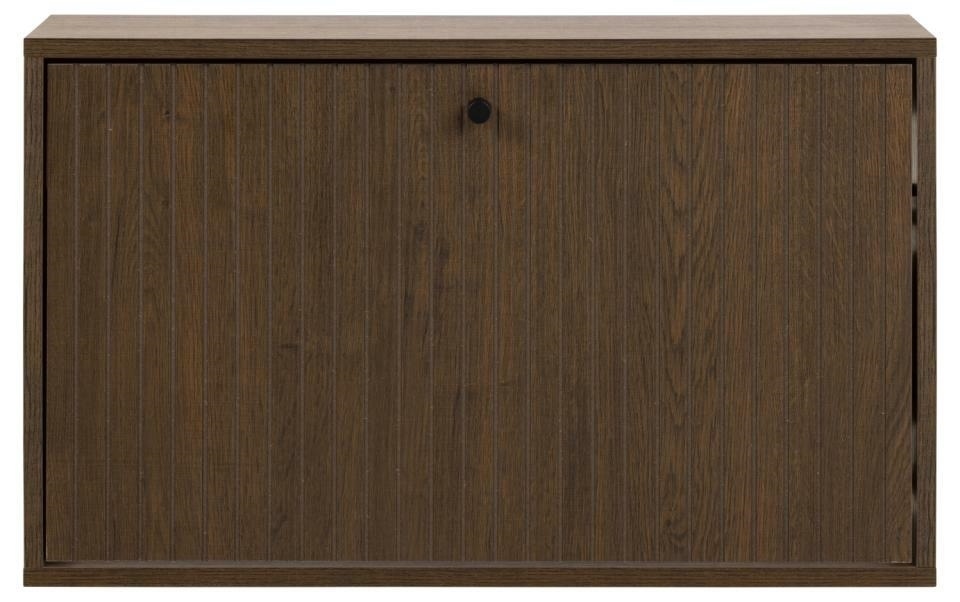 Szafka na buty o wyglądzie dymionego dębu z lamelowym frontem doda stylu i praktyczności do przedpokoju. Kontrastowy wygląd dymionego dębu uzupełniony czarnymi akcentami tworzy dobrze wyważony efekt wizualny. Zawieś ją na ścianie, aby wykorzystać przestrzeń i przechowywać buty poza zasięgiem wzroku. Szafka na buty z frontem lamelowym . Możliwość montażu na ścianie. Łatwa w pielęgnacji powierzchnia o wyglądzie dymionego dębu . Certyfikat FSC . Zaprojektowany przez projektanta Lasse Cha Pedersena i chroniony wyłącznie dla Actona Wymiary kartonu: 81x48x10cm, waga 10kg