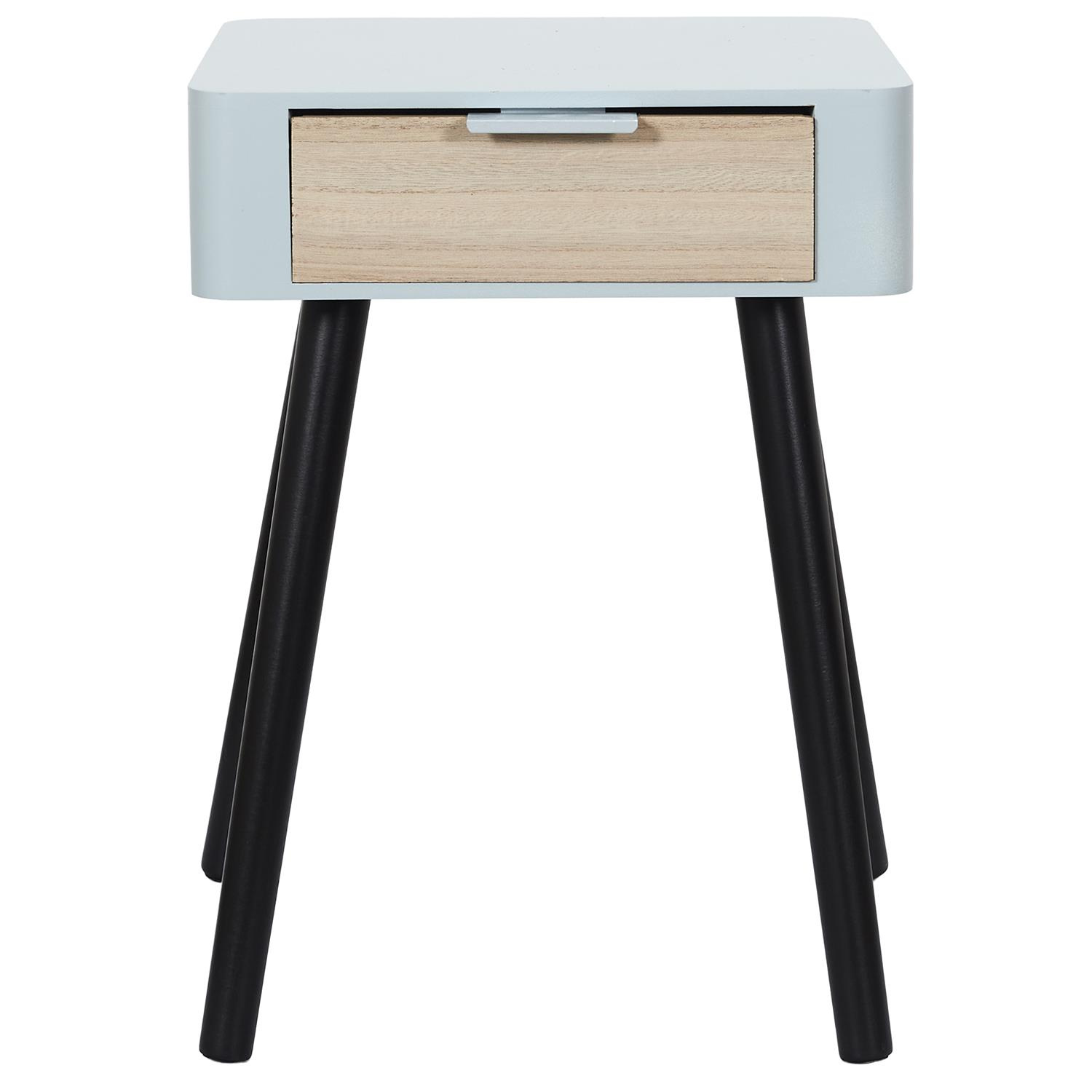 Drewniana szafka nocna Padano to mebel idealny do sypialni w stylu skandynawskim. Szafka nocna na czterech nogach z litego drewna sosnowego pomalowana została na szaro. Korpus szafki został wyprodukowany z mocnej płyty MDF. Szafka posiada pojemną szufladę, której front pokryty został laminatem imitującym drewno.