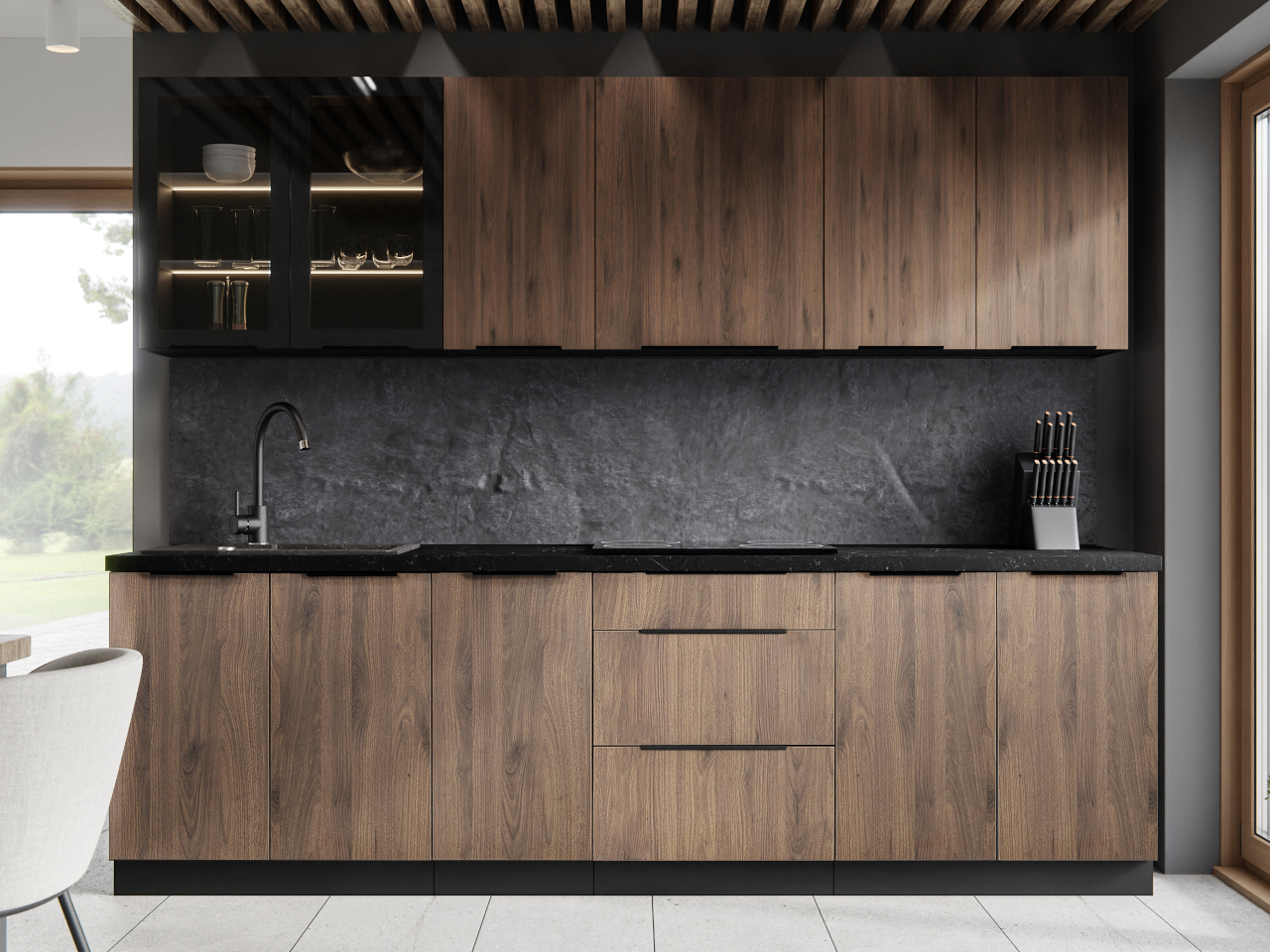 Uchwyty: W zestawie: Metalowe, w kolorze czarnym (225mm)