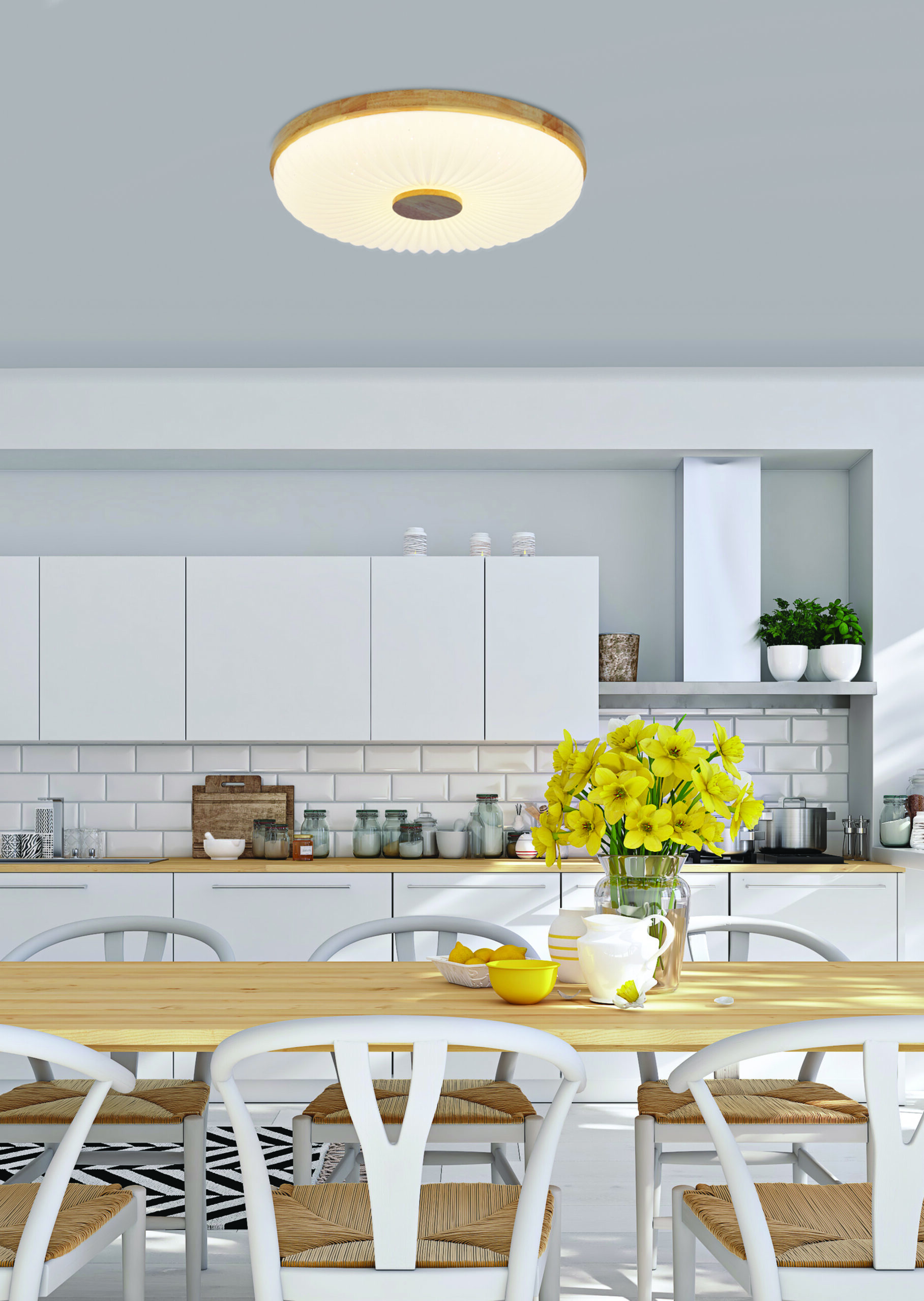 Oświetl swoje wnętrze stylową lampą sufitową Tart. Ten elegancki plafon łączy nowoczesny design z naturalnym drewnianym wykończeniem i białym kloszem. Wyposażona w energooszczędne oświetlenie LED o mocy 24W, lampa emituje neutralne światło, idealne do kuchni, salonu czy sypialni. Tart to doskonałe połączenie funkcjonalności i estetyki, które wprowadzi ciepło i przytulność do każdego pomieszczenia.