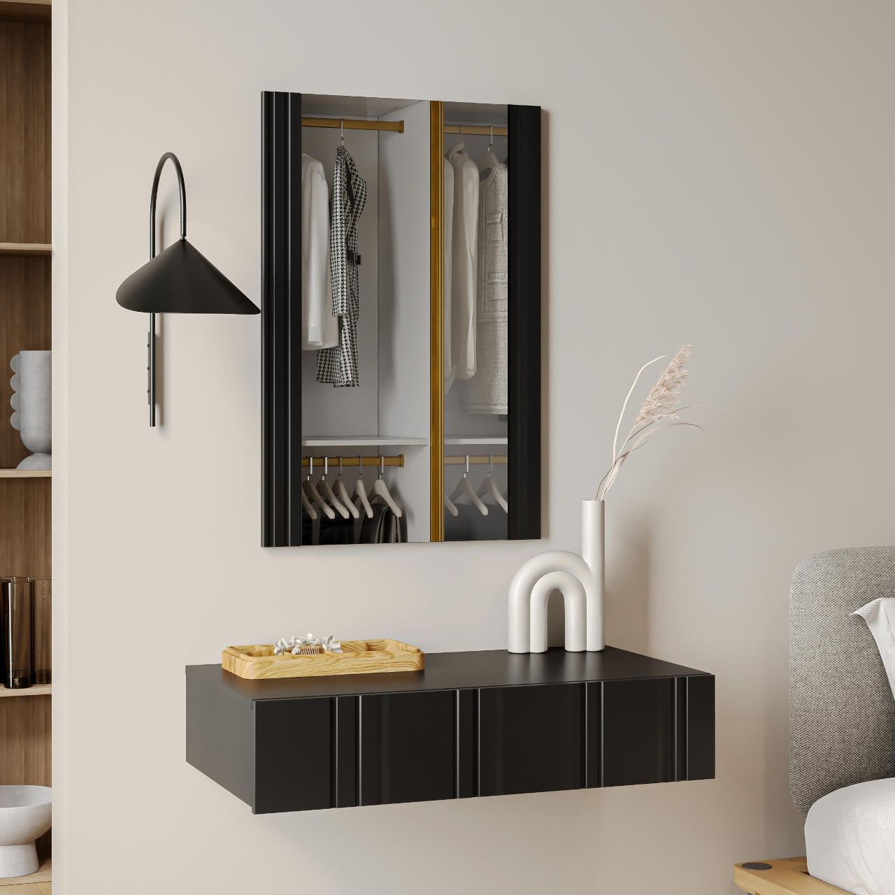 Toaletka z lustrem ISOLA czarny mat