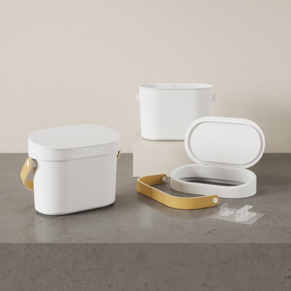 Wykonany z ABS z recyklingu bez BPA, pasuje do standardowych worków o pojemności 6 litrów i można go myć w zmywarce (po zdjęciu uchwytu).