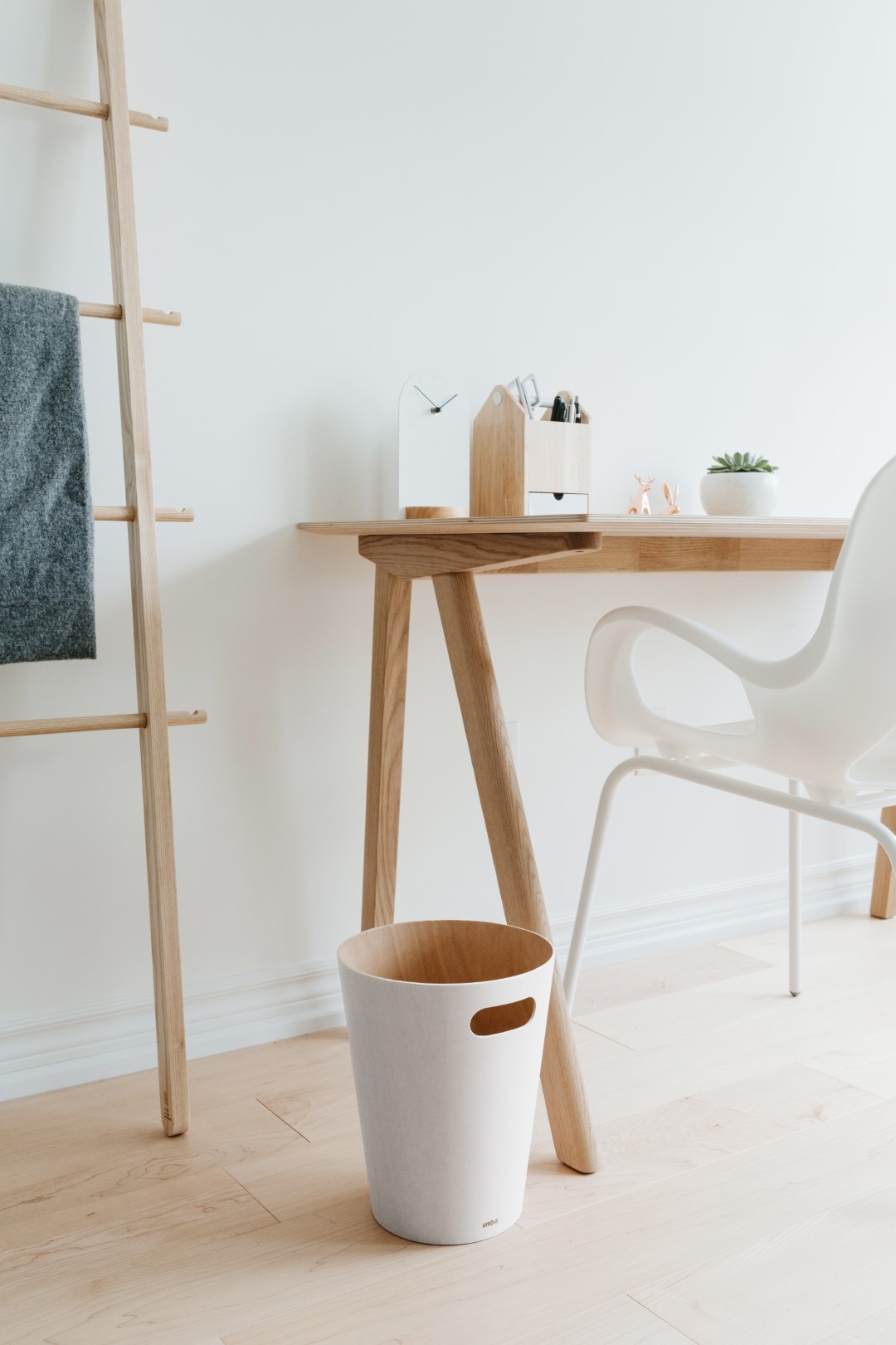 Kosz wykonany z drewna polakierowanego z zewnątrz, sprawdzi się idealnie jako biurowy lub łazienkowy kosz na śmieci.