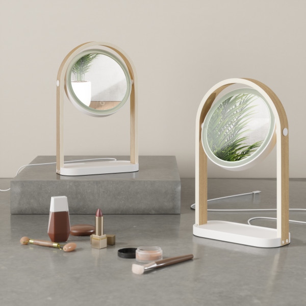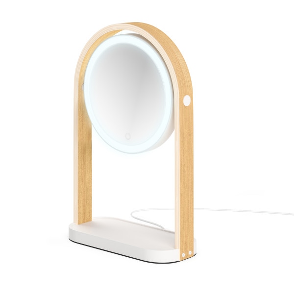 Okrągłą taflę otacza równomierne oświetlenie LED, które zapewnia jasne, pozbawione cieni światło idealne do makijażu i pielęgnacji.
