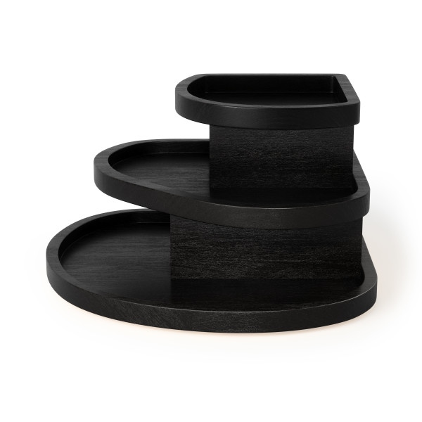 Trójpoziomowa konstrukcja z ukrytymi przegródkami pozwala uporządkować ulubione przedmioty, zapewniając do nich wygodny dostęp.