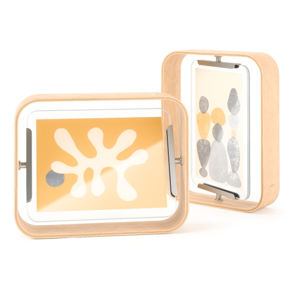 Dwustronna, obrotowa konstrukcja umożliwia prezentowanie zdjęć zarówno w orientacji pionowej, jak i poziomej.