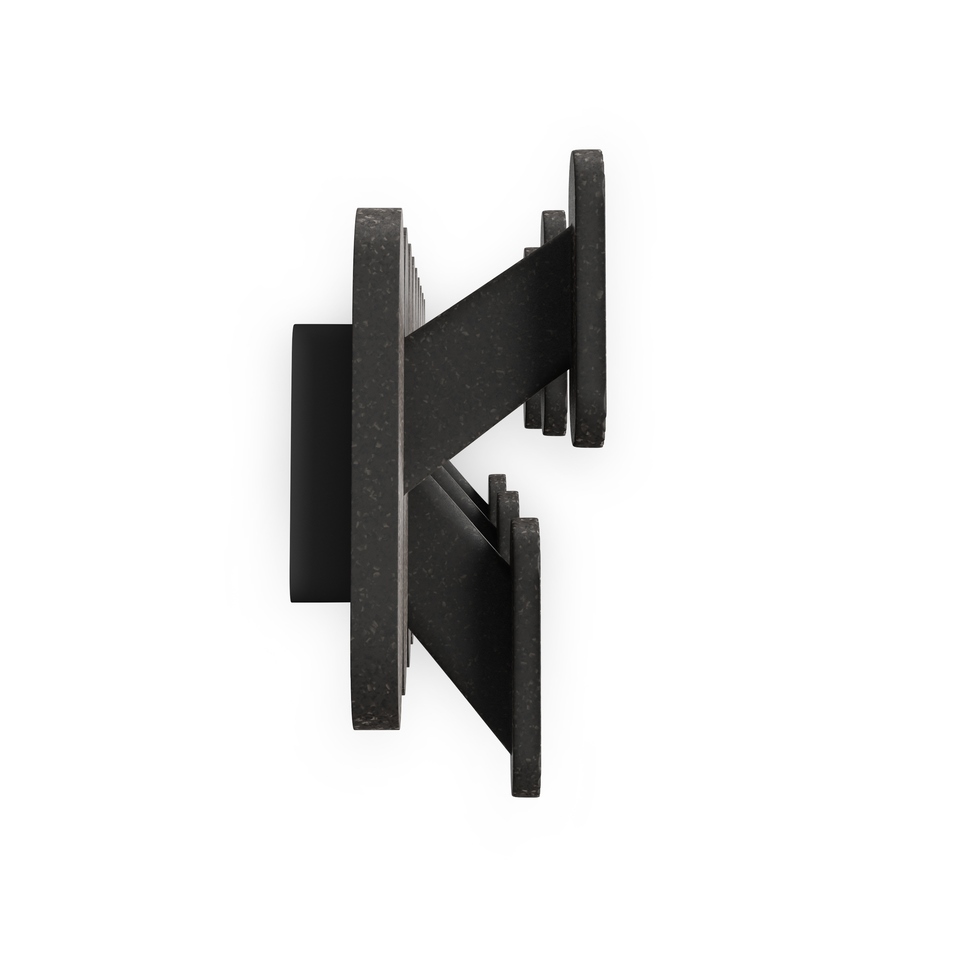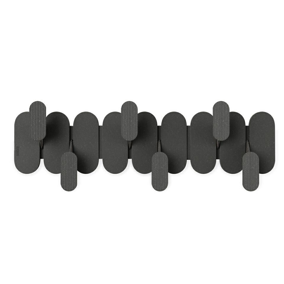 Wykonany z lekkiego i trwałego tworzywa sztucznego pochodzącego z recyklingu z dodatkiem włókna drzewnego, oferuje nie tylko solidność, ale także subtelną, naturalną fakturę. Nowoczesna, graficzna forma wieszaka idealnie wpisuje się w różne przestrzenie – od przedpokoju, przez sypialnię, aż po łazienkę.