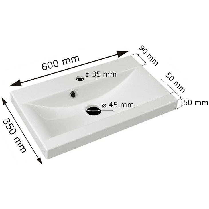 Umywalka z lanego marmuru, którą charakteryzuje bardzo duża twardość, odporność na przebarwienia i zarysowania oraz wysoka wytrzymałość na niskie i wysokie temperatury.
