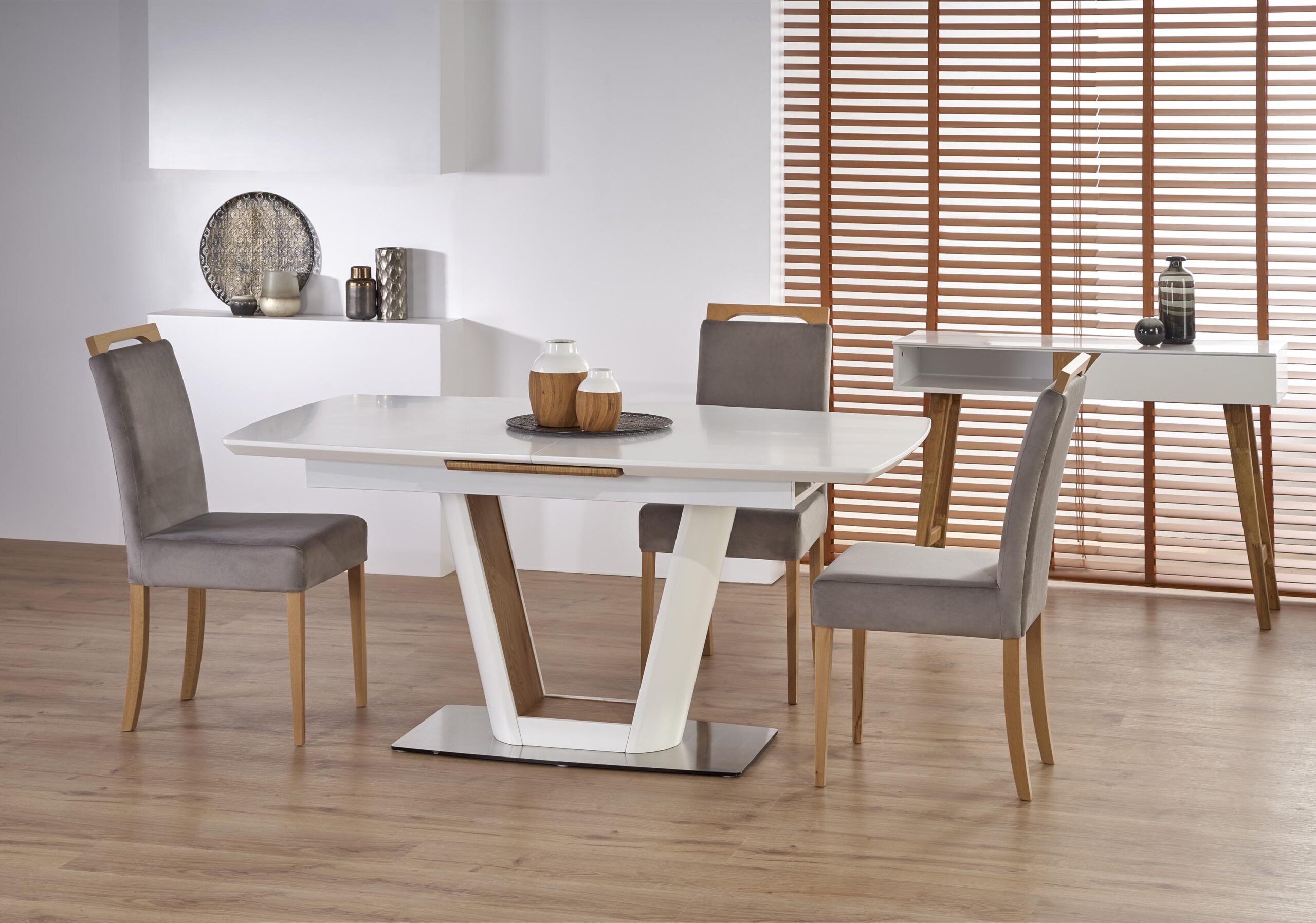 Napisz pierwszą opinię o „VALETTI stół rozkładany biały / dąb złoty”