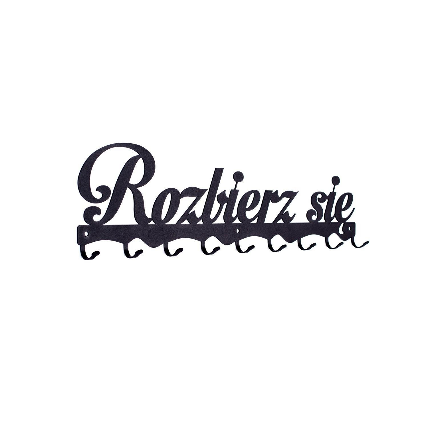 Wieszak ścienny Rozbierz się to stylowe rozwiązanie do przedpokoju, holu lub poczekalni. Jego precyzyjnie wycięty laserowo wzór, z frywolnym napisem, nada uroku każdemu wnętrzu. Stalowy malowany proszkowo wieszak jest uniwersalny oraz odporny na uszkodzenia. Matowe wykończenie dodaje listwie stylu. Dzięki aż 9 haczykom o udźwigu do 3kg każdy, możemy powiesić na wieszaku klucze, kurtki lub nawet torby. Produkt dostępny jest w dwóch kolorach co zwiększa jego możliwości aranżacyjne. Maksymalne obciążenie to 27kg. Do wieszaka załączany jest zestaw montażowy, który składa się z kołków, zaślepek i