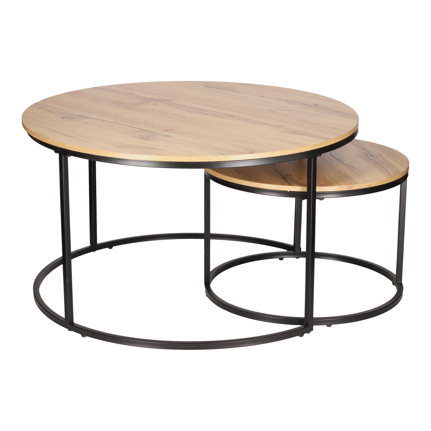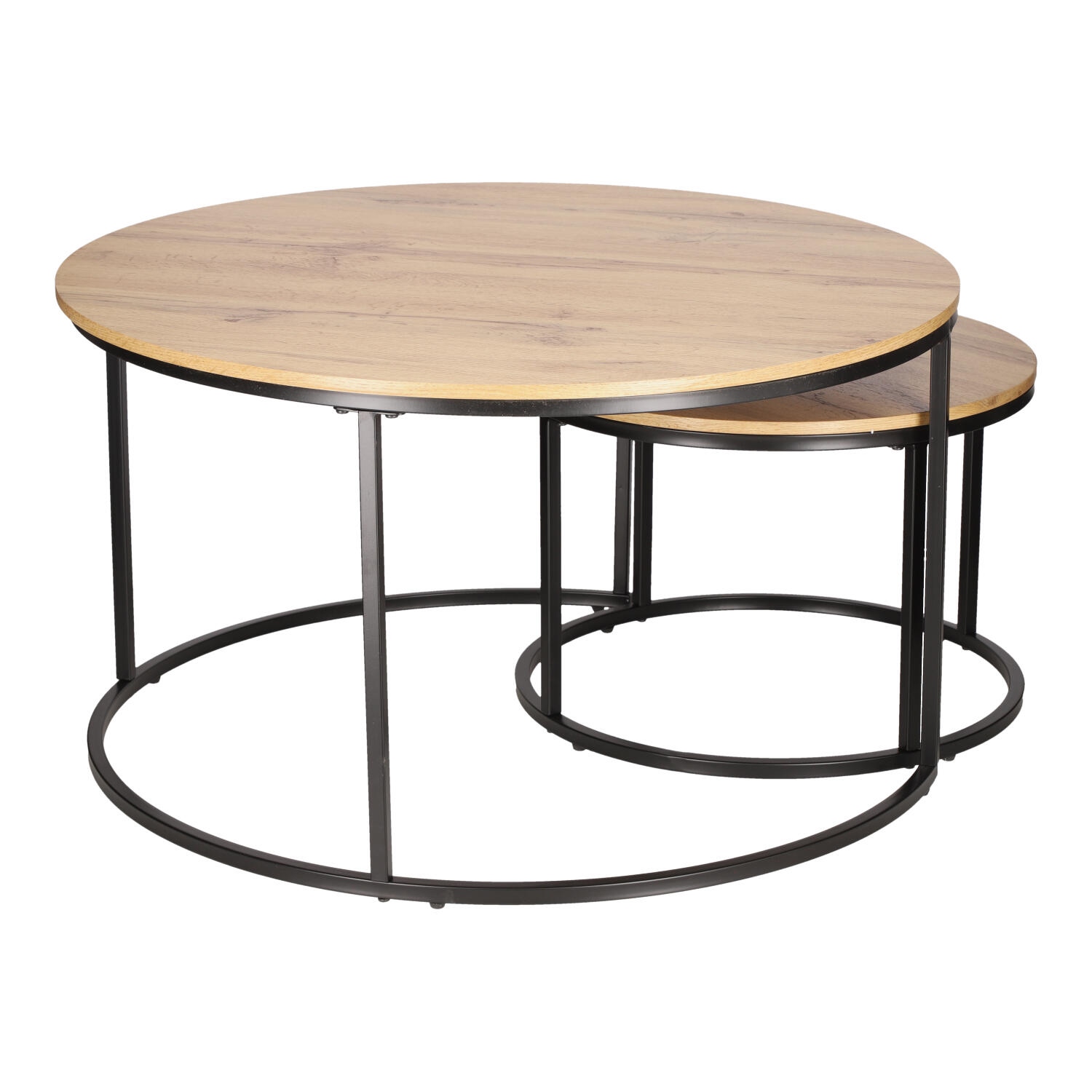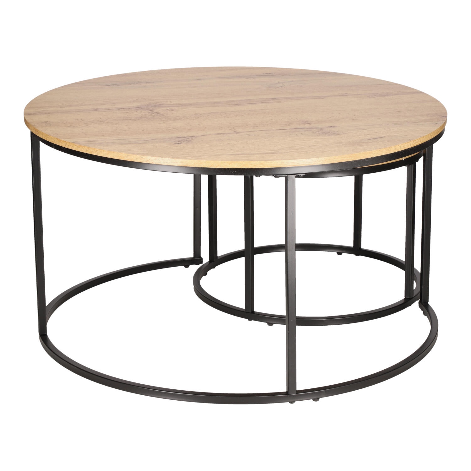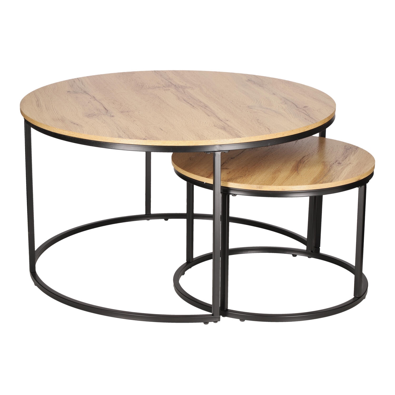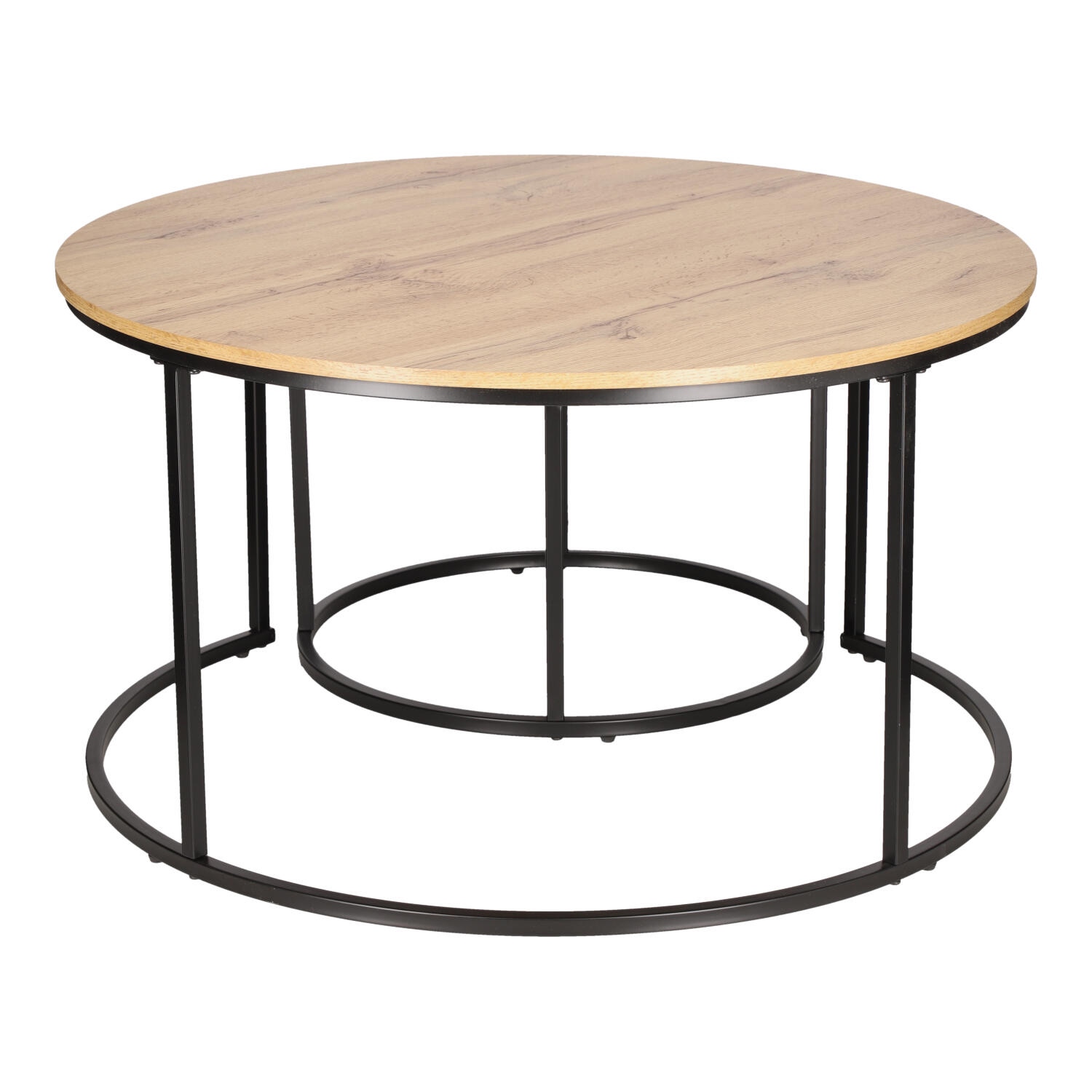 Zestaw dwóch stolików kawowych sprawdzi się w salonie aktywnej rodziny. Zestaw dwóch stolików, które możemy używać zestawione razem lub całkiem oddzielnie. Stoliki gdy nie są potrzebne możemy włożyć jeden pod drugi, uzyskując przy tym więcej miejsca w salonie do naszych aktywności. Stoliki wykonane zostały z blatu z płyty MDF w papierowej okładzinie imitującej drewno dębu oraz metalowej, malowanej proszkowo podstawy. Okrągłe stoliki wyposażone zostały w stopki z tworzywa, dzięki czemu są bezpieczne dla naszej podłogi. Wymiary dużego stolika: 80x80x45cm, Wymiary mniejszego stolika: 50x50x35cm Maksymalne obciążenie na jeden stolik 40kg Wymaga montażu
