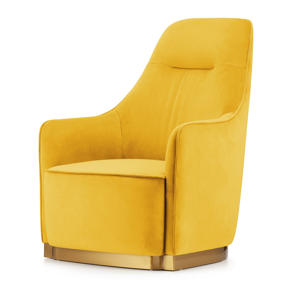 Fotel Bino to połączenie elegancji, luksusu i wygody. Żółty velvet, złota podstawa i solidna konstrukcja tworzą fotel, który jest zarówno praktyczny, jak i wyjątkowo stylowy.